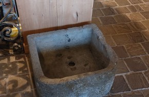 Nr. 7 Hardstenen gootsteenbak A: 92 cm x 56 cm. Buitenhoogte 15 cm, binnenhoogte 6 cm. Prijs € 300,-. Gootsteenbak B: 94 cm x 44 cm, gootsteenbak C VERKOCHT: 119 cm x 62 cm.