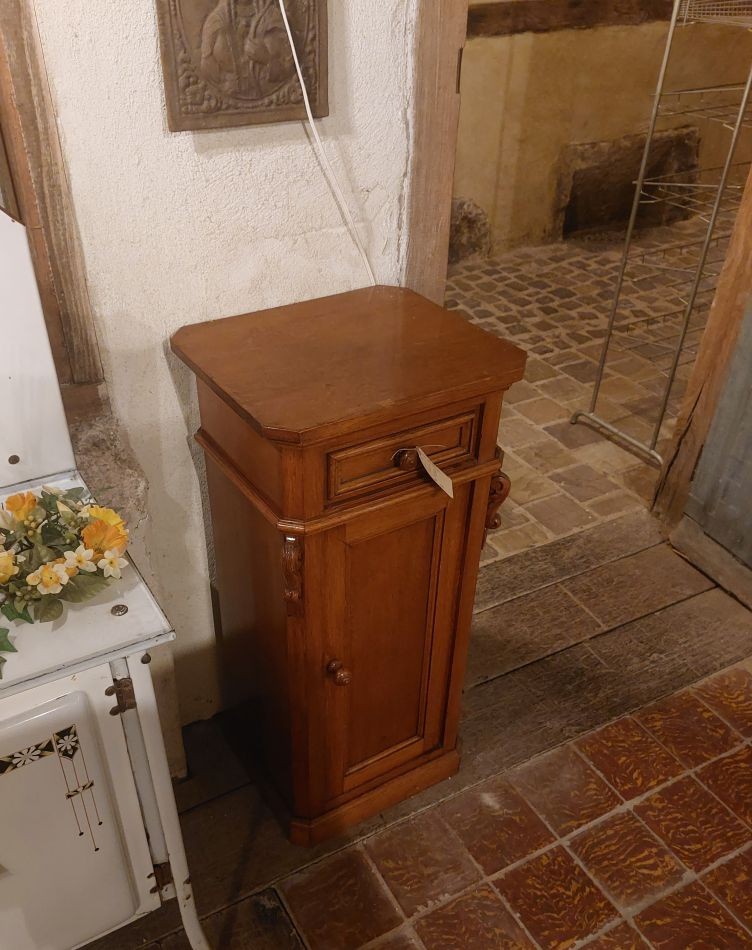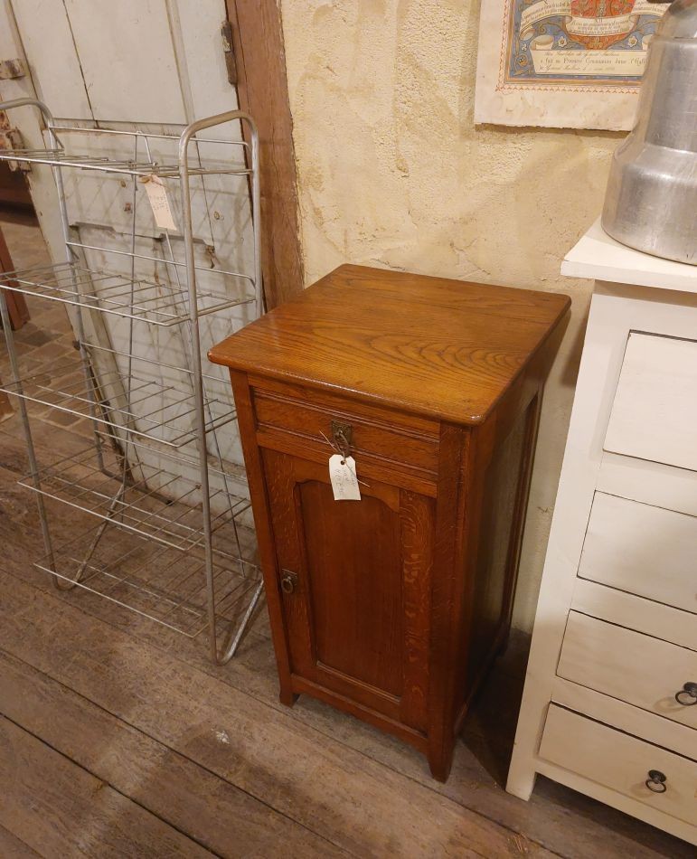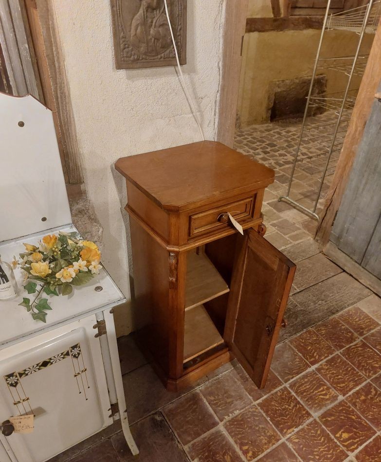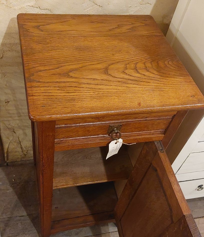 Nr. 36a Mooi oud nachtkastje met de originele ringvormige 'knopjes'. Hij is 84 cm hoog rn 40 cm breed en diep en kost € 95,-. Zoek je informatie over onze winkel? Klik dan hier.