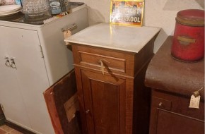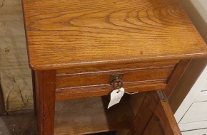 Verkocht Nr. 34a Oud nachtkastje met prachtig handgreepje op de lade. Hij is 39 cm breed, 35 cm diep en 82 cm hoog. Hij kost € 75,-. Voor informatie over de winkel, klik hier.