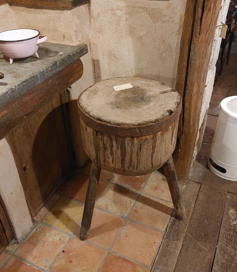 VERKOCHT Nr. 35a We hebben weer een oud middelgroot hakblok binnen! Dit decoratieve hakblok staat op wieltjes en is dus gemakkelijk te verplaatsen. Het blok is 60 cm x 60 cm x 88 cm. Hij kost € 350,-. Voor informatie over Vieille France, klik hier.