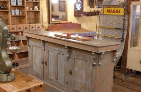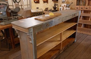 Natuurlijk kan hij prima weer als toonbank worden ingezet maar hij zou ook mooi staan in een keuken als keukeneiland.