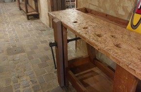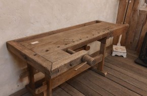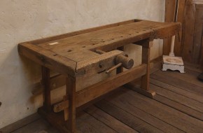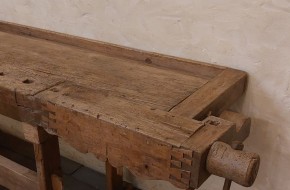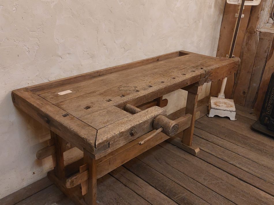 Nr. 466 a Kleine oude werkbank met 2 bankschroeven en onderblad. Hij is 145 cm lang (dit is inclusief de bankschroef van de rechter zijkant), 65 cm diep (dit in inclusief voorste bankschroef) en 89 cm hoog. Prijs € 450,-. Wil je informatie over de winkel, klik dan hier.