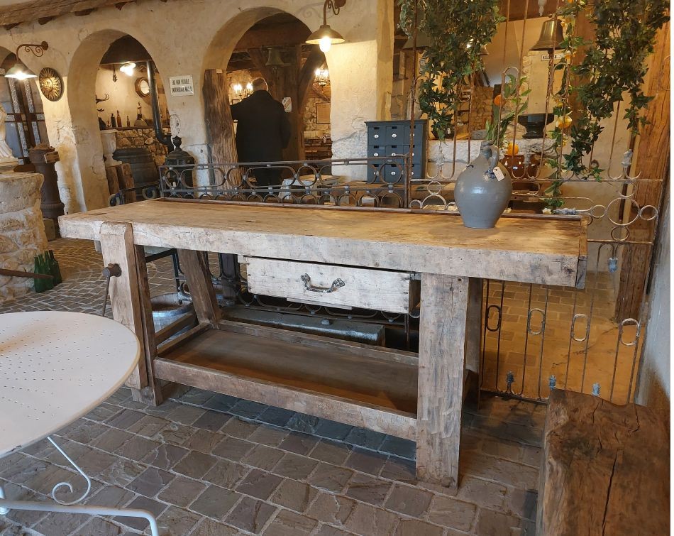 Deze werkbank is 180 cm lang, 56 cm diep en 74 cm hoog. Prijs € 850,-. Meer informatie over de winkel? Klik hier.