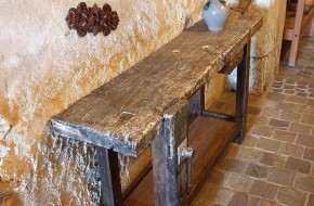 Nr. 467a Leuke oude werkbank. Deze kleine heeft een bankschroef en een onderblad. Hij is 148 cm lang, 51diep en 85 cm hoog. Prijs € 750,-. Voor informatie over de winkel, klik hier.