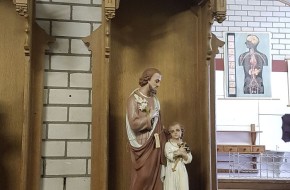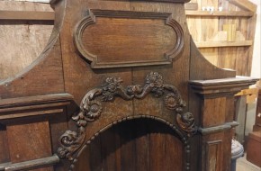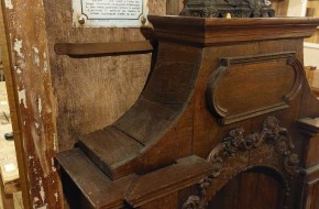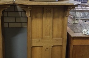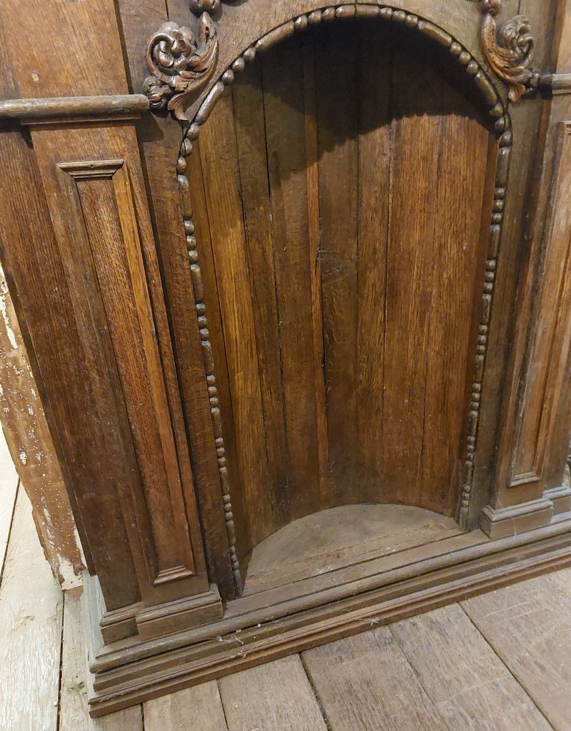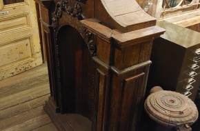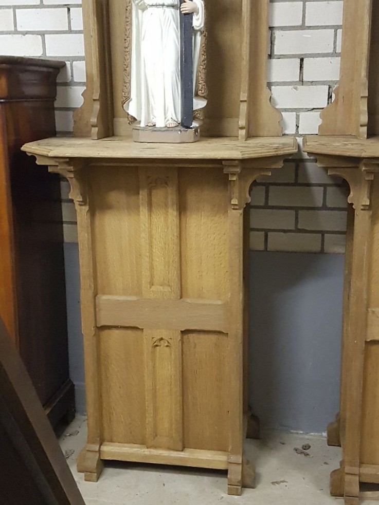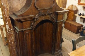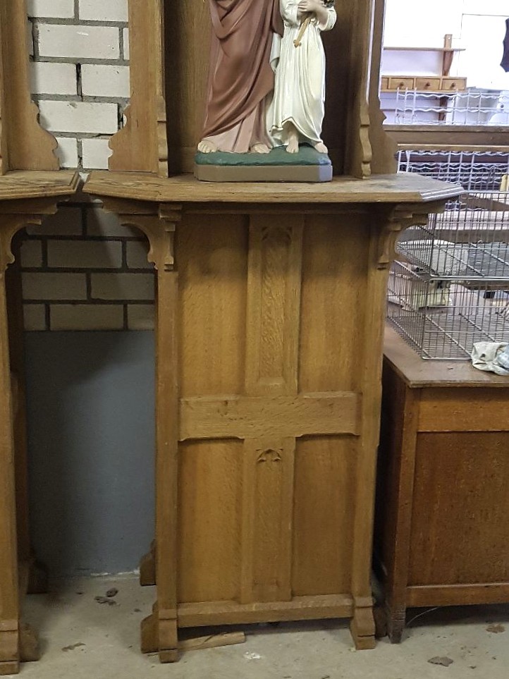 Nr. 22a Antiek kerkaltaar, onderdeel altaar, console voor heiligenbeeld. Prachtig en uniek antiek stuk afkomstig uit een kerk. Afmeting: 152 cm hoog, 115 cm breed en 30 cm diep. Voor info over de winkel, klik hier.