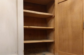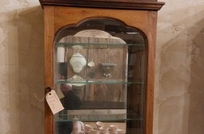 Nr. 38a Leuk oud hangkastje met aparte patine. Achter het deurtje, bergruimte op 2 legplanken en de bodemplaat. Hij is 75 cm hoog, 52 cm breed en 35 cm diep. Prijs € 125,-. Voor informatie over openingstijden en dergelijke, klik hier.