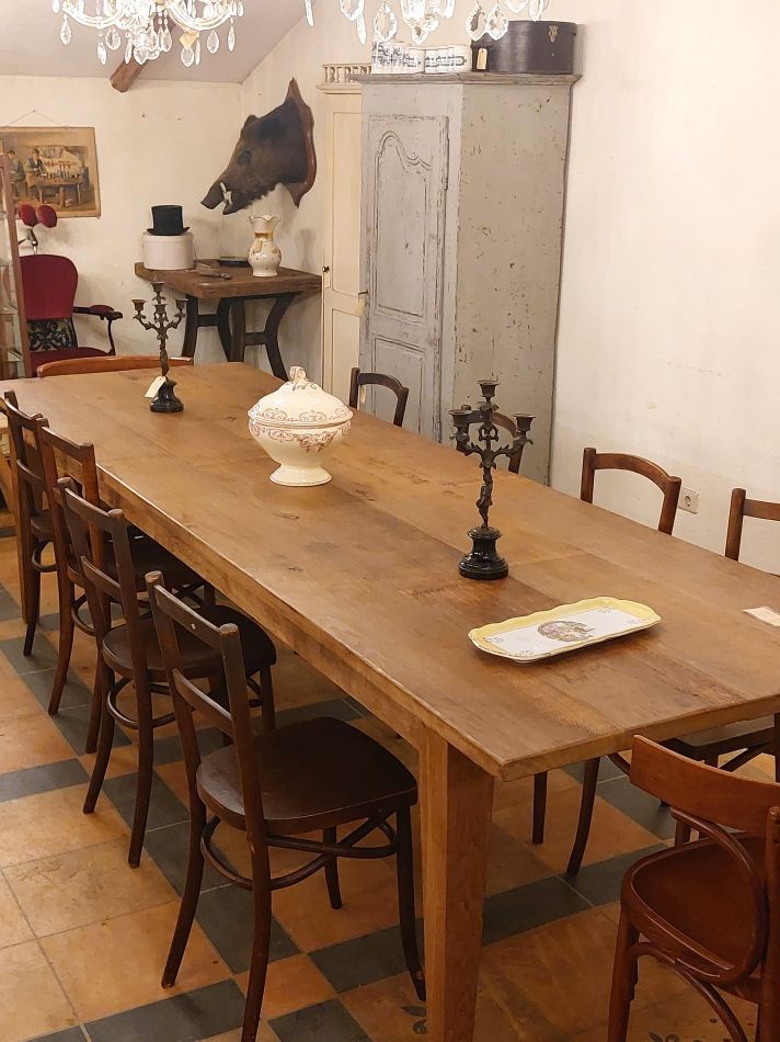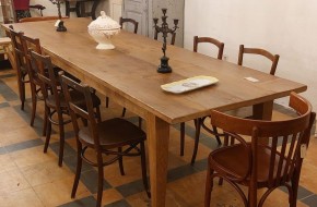 De tafel is 198 cm lang, 60 cm breed en 78 cm hoog. Prijs € 695,-. Voor informatie over de winkel, klik hier.