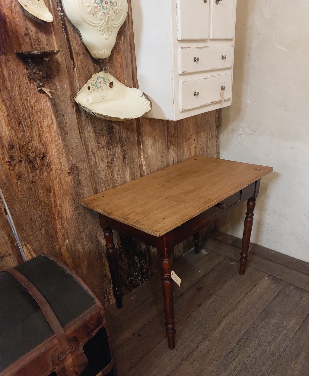 Nr. 119a Op zoek naar een oud keukentafeltje of sidetabletje, en mag hij niet te diep zijn? Deze tafel is 100 cm lang, 50 cm diep en 79 cm hoog. Prijs € 185,-. Voor adres informatie en openingstijden, klik hier.